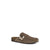 The Mellow Suede Mules By Tory Burch offers a sleek and elegant design. With a round toe, a metal buckle with iconic logo applique on the front and a flat sole, it ensures comfort and style. The branded insole adds a distinctive touch, making it perfect for casual and sophisticated looks.
